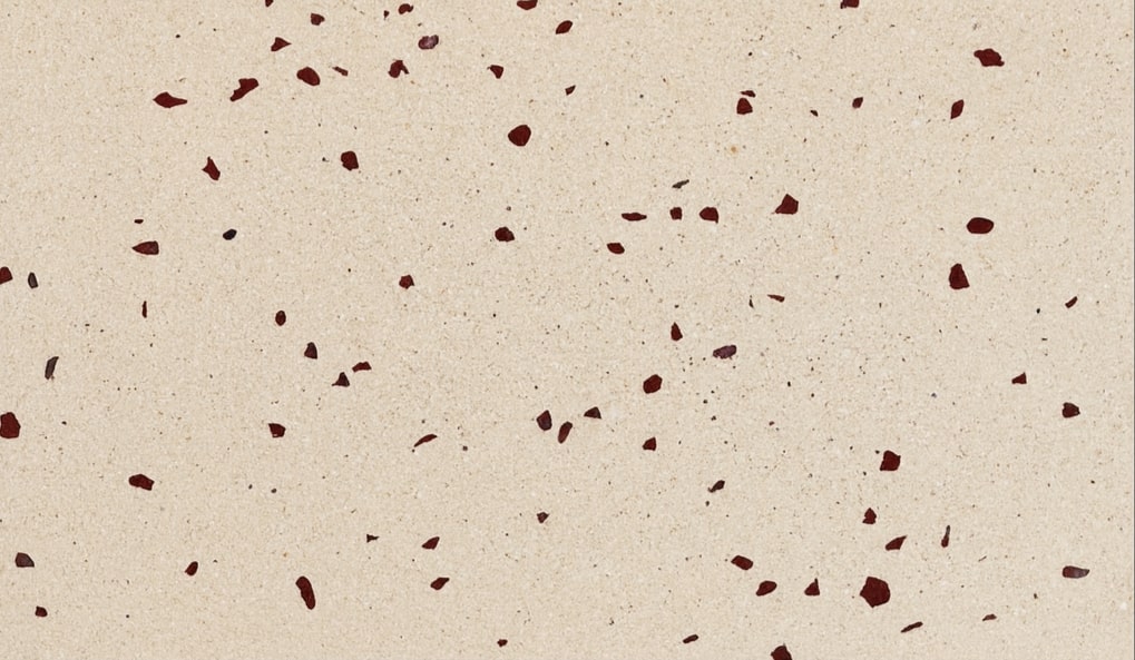 A soft cream terrazzo-cement outdoor tile accented with scattered ruby-red stone chips, ideal for villas, landscape paths, shaded patios, and decorative outdoor areas.
